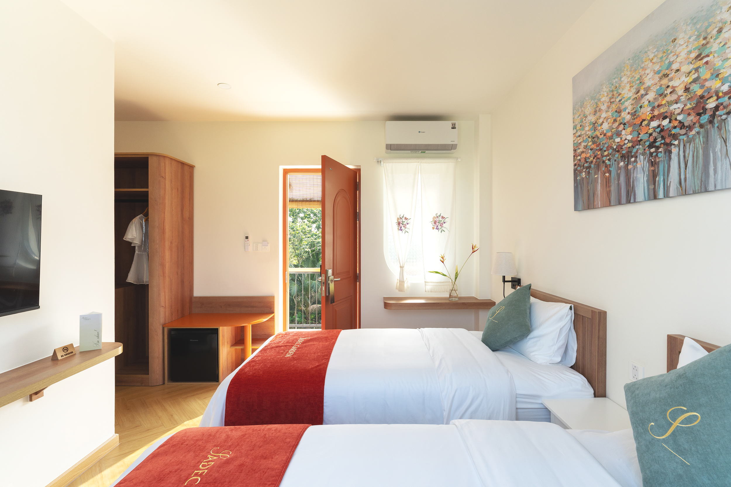 Tucked amidst the lush greenery of Sadec Garden, our rooms and suites offer a serene retreat where nature and comfort meet in perfect harmony. Each space is designed with soft tropical light, natural textures, and quiet elegance - inviting you to rest, breathe, and reconnect with the slow rhythm of the Mekong. Whether you wake to the sound of rustling leaves or step out to your private garden view, every detail reflects the gentle beauty and heartfelt hospitality of the South.